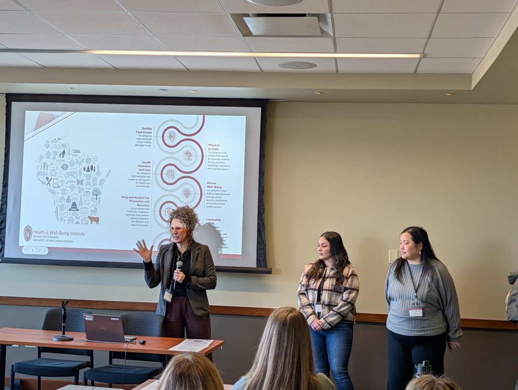 Angela Flickinger, Yesenia Meza and Ka Zoua Thao (Division of Extension, Health and Well-Being Institute) present their work.