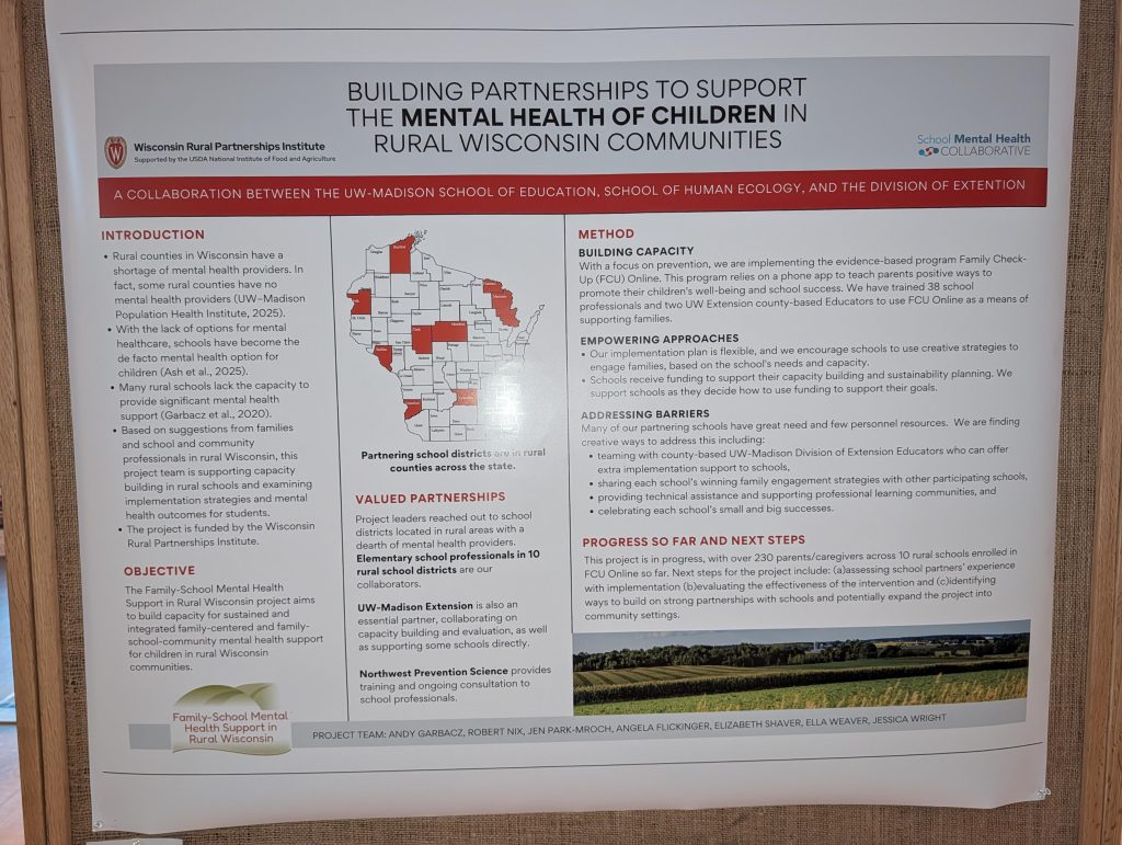 The poster presented by the Promoting Family-Centered and Family-School-Community Mental Health Support for Children in Rural Wisconsin Communities project.